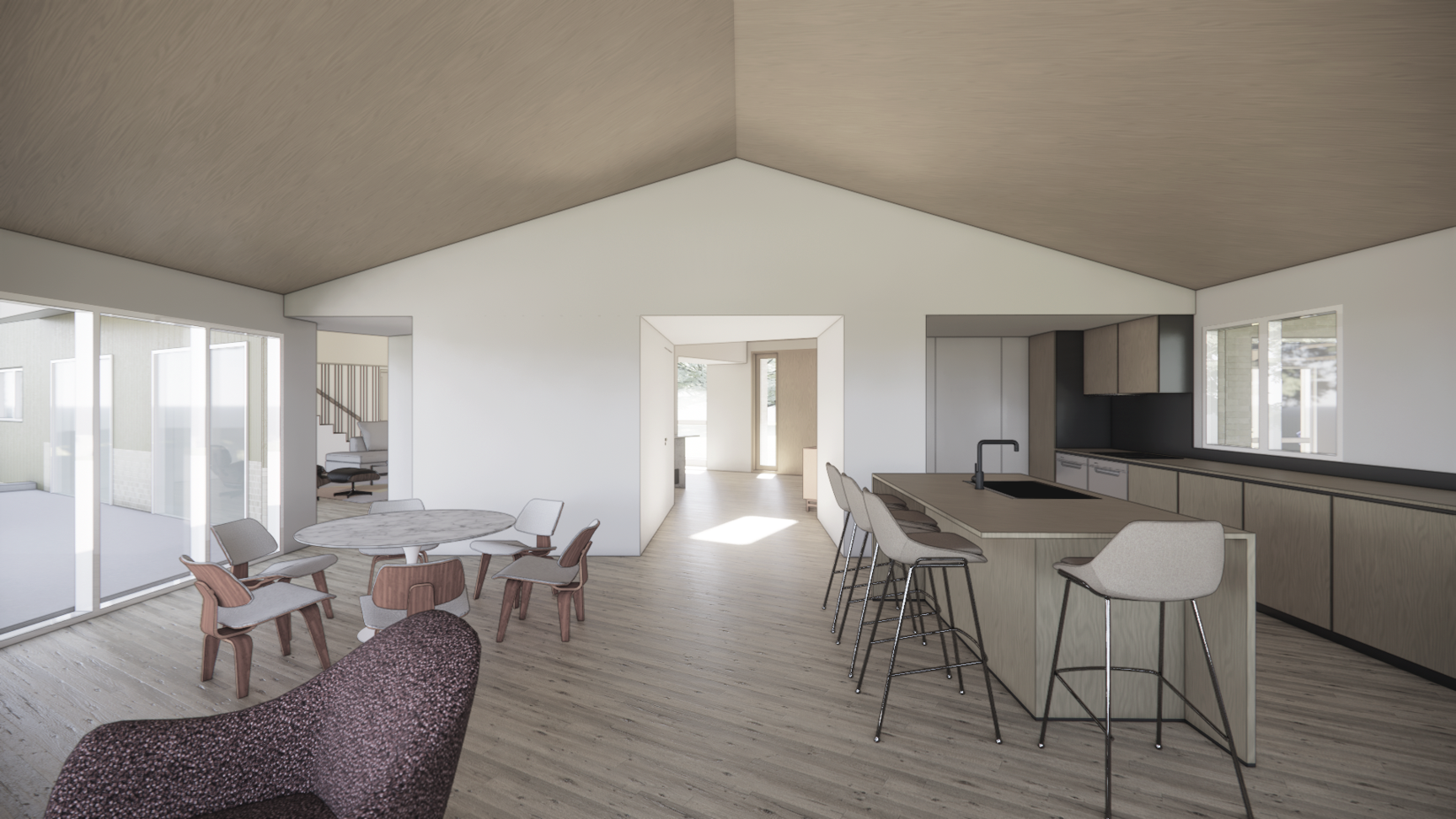 The design builds on the character of the original mid-century architecture while introducing a series of open-plan living spaces that connect the kitchen, dining, and living areas. Thoughtfully integrated additions expand the home to support contemporary family life, creating a warm and light-filled residence that honors its origins while looking toward the future.